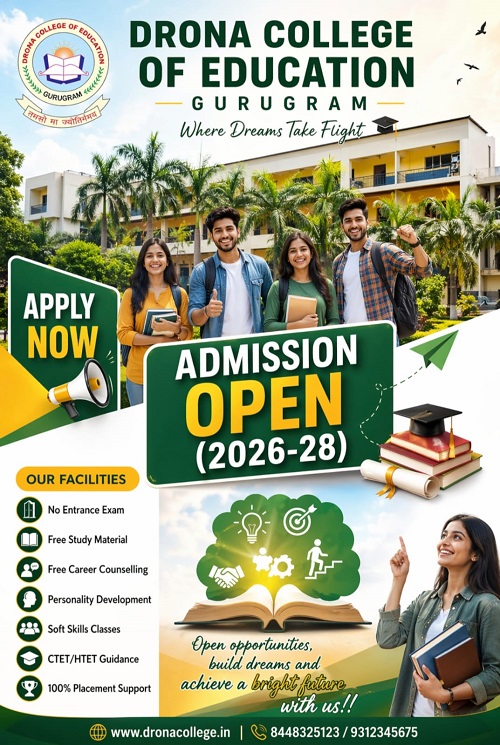 College of education is one of the best education colleges in Gurugram since 2007. It is affiliated to Gurugram University, Gurugram. Drona College of Education campus is located in serene, tranquil and pollution free environment situated at