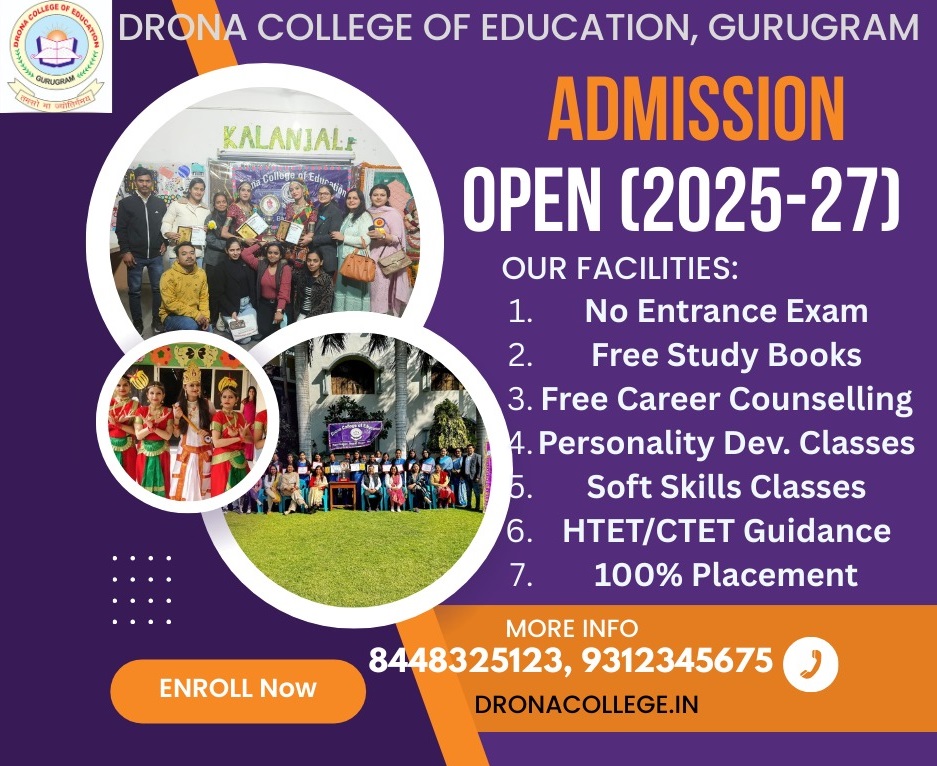 College of education is one of the best education colleges in Gurugram since 2007. It is affiliated to Gurugram University, Gurugram. Drona College of Education campus is located in serene, tranquil and pollution free environment situated at